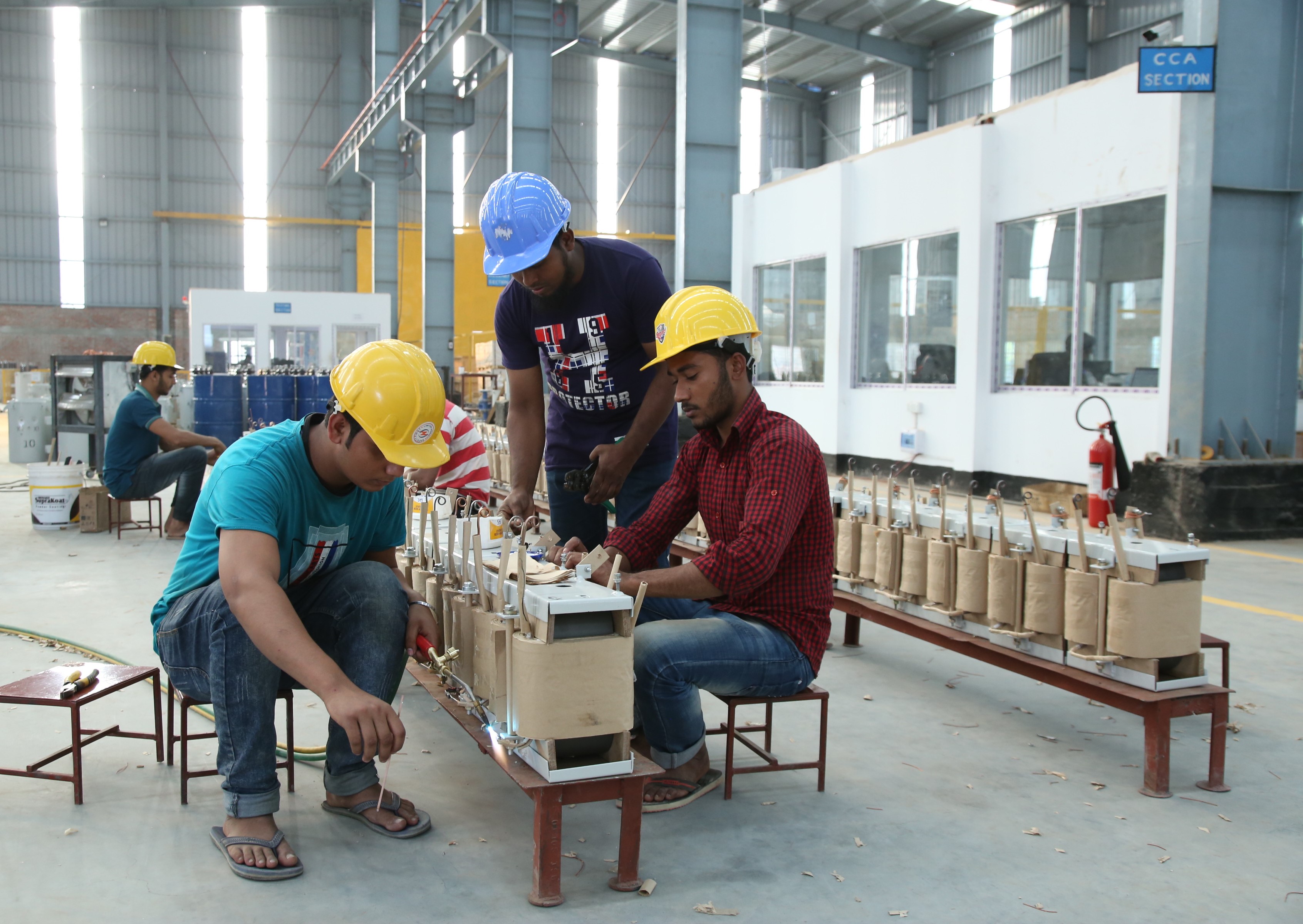 Completed single-phase transformers inspected and prepared for global dispatch.